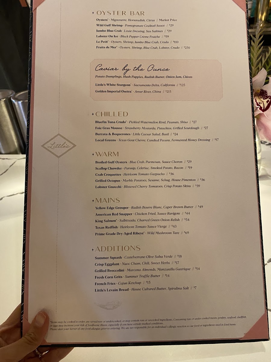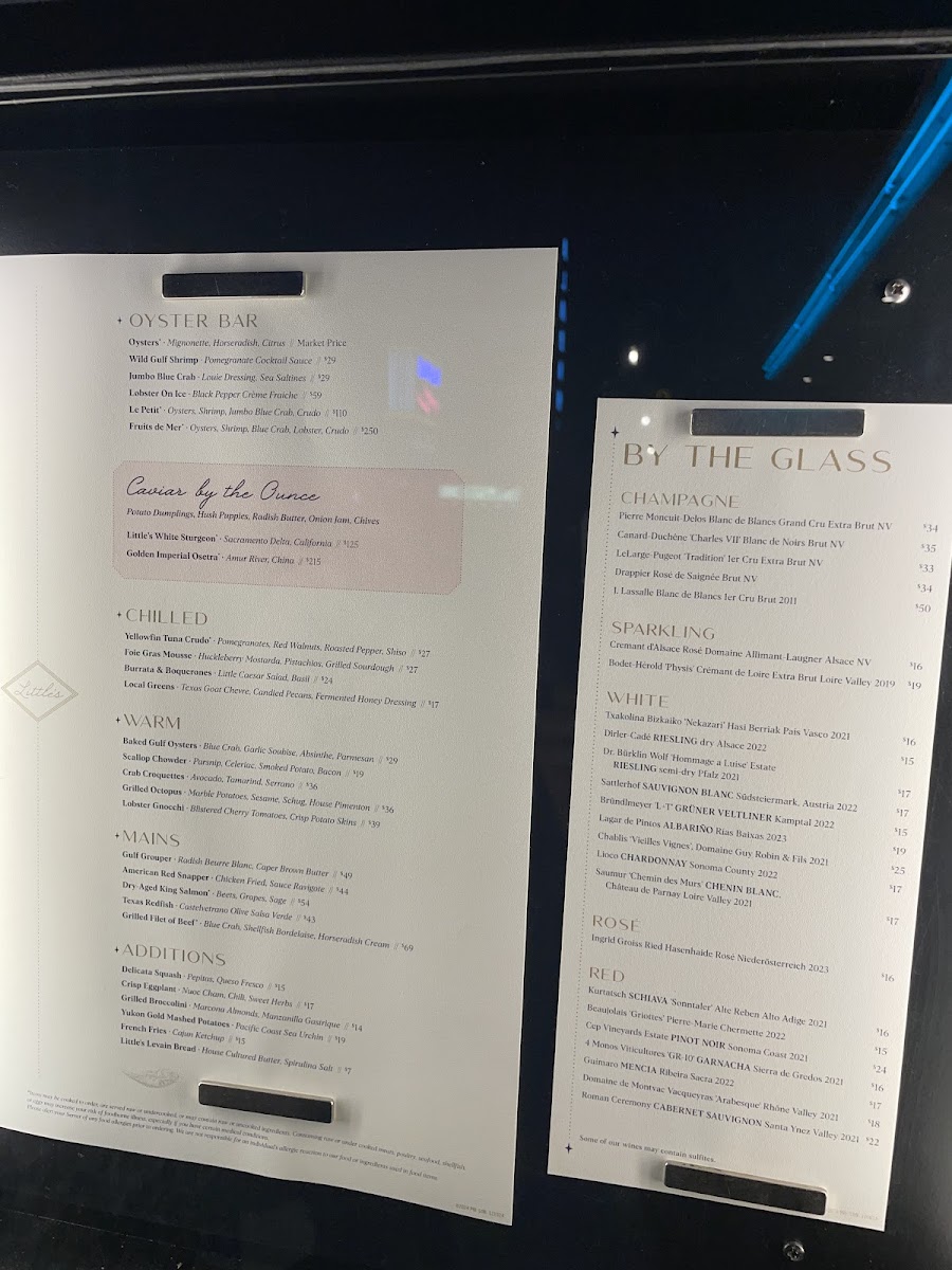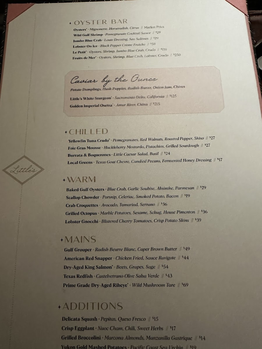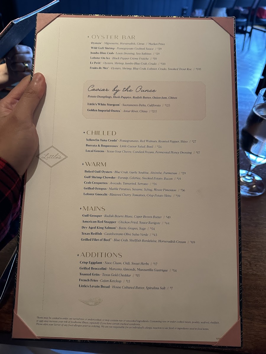 Oysters, Shrimp, Blue Crab, Lobster, Crudo, Smoked Trout Roe